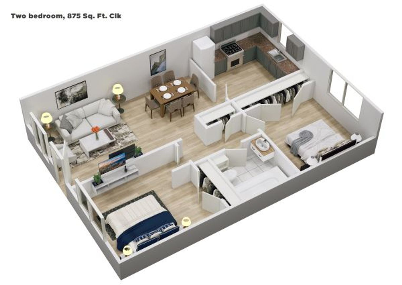 This renovated apartment has tile floors, granite countertops. Some units are upgraded to Stainless Steel Plumbing, Stainless steel Cabinet Hardware, and LED Recessed Lighting.