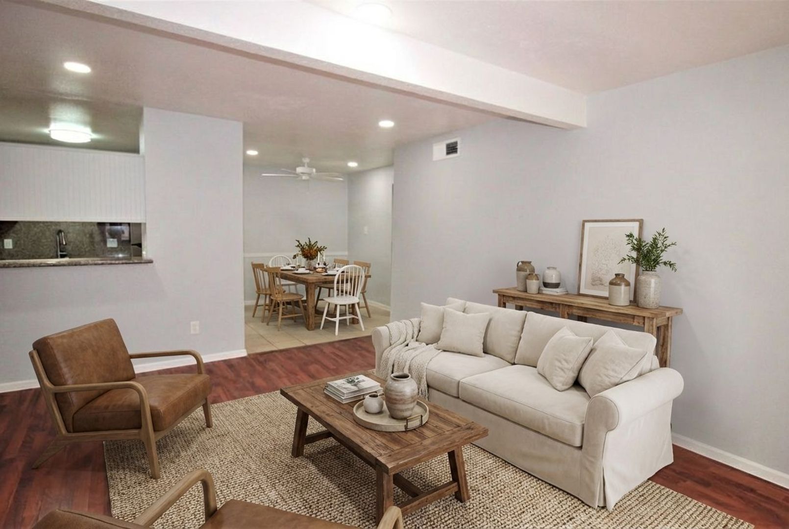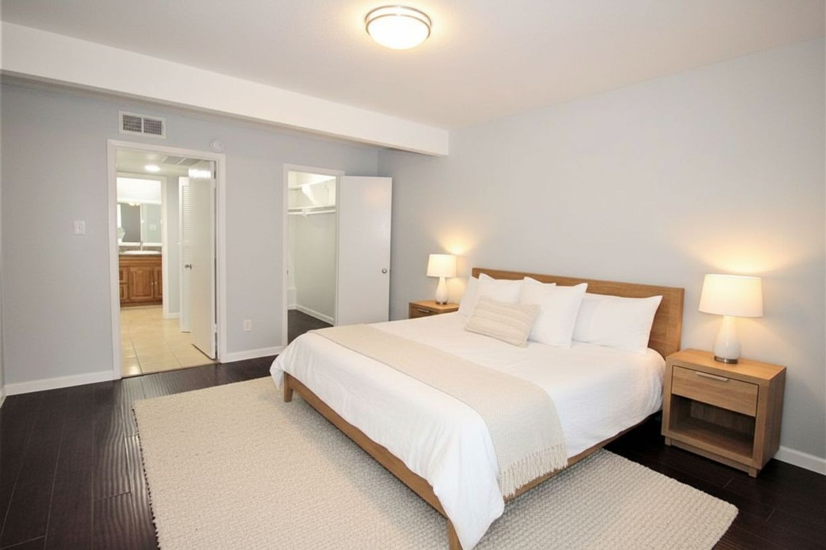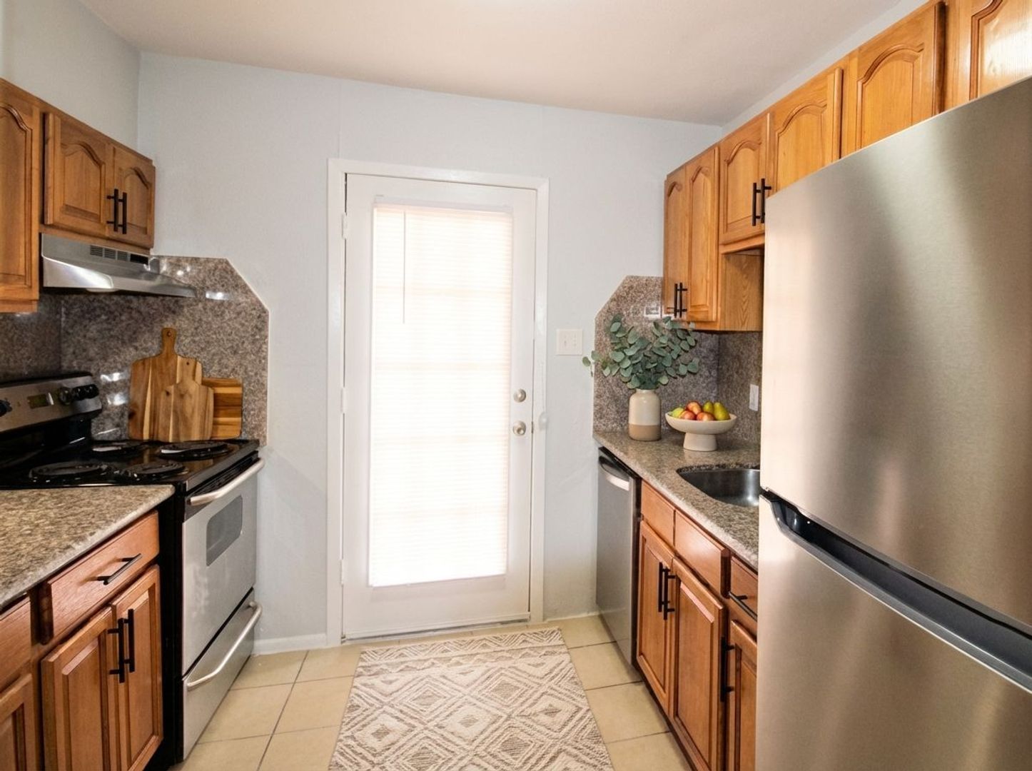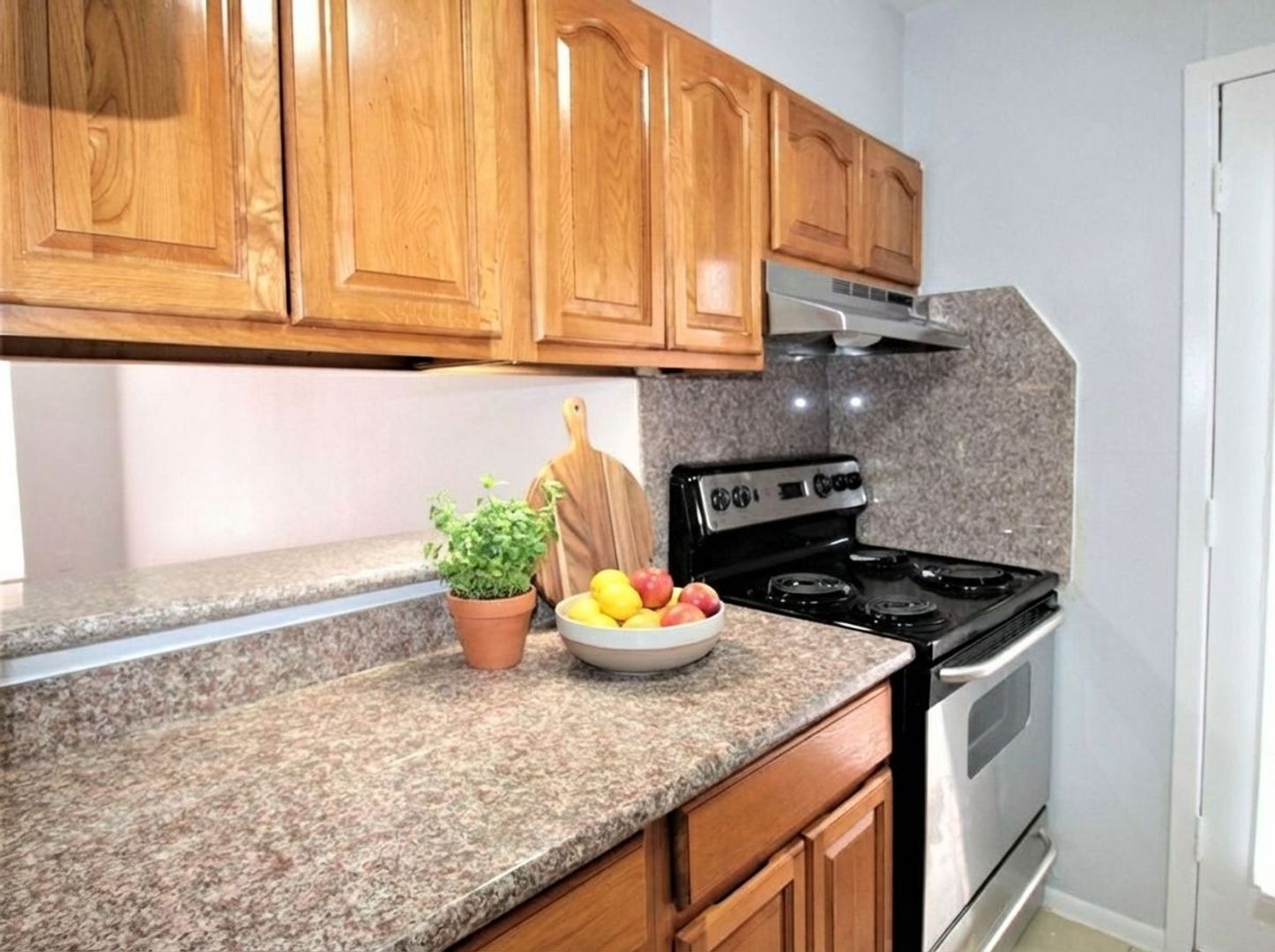 This 761 sq ft 1 x 1 apartment has been completely renovated with tile floors, granite counter tops and large walking-in closets.