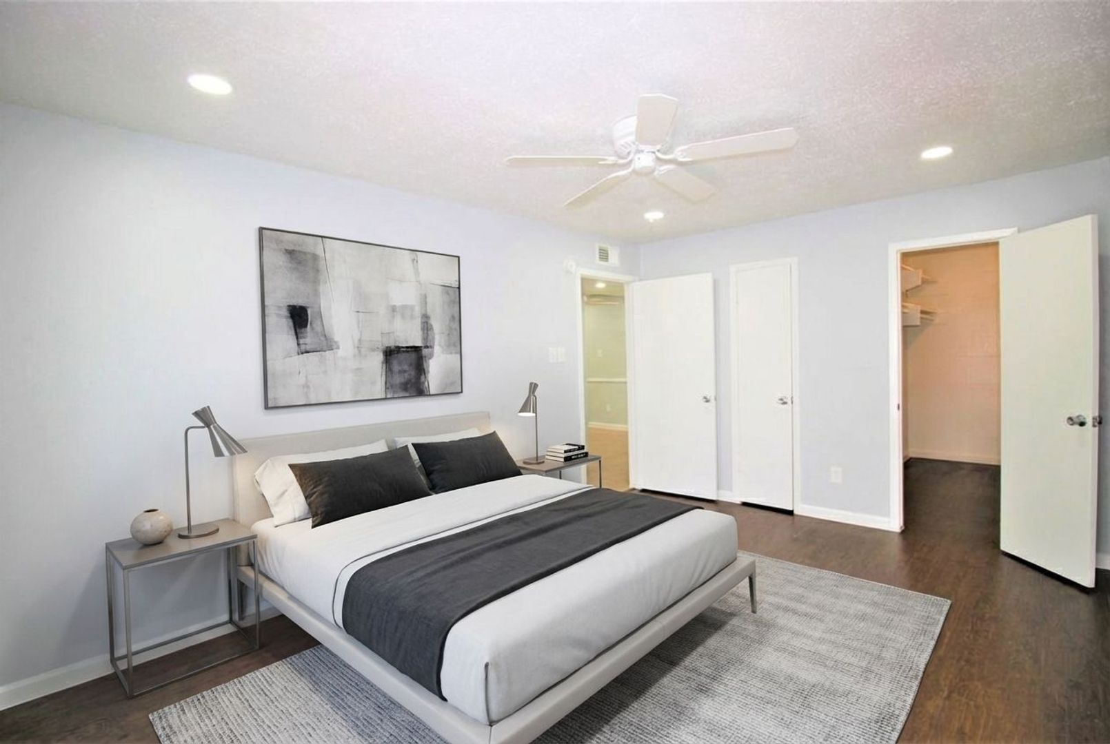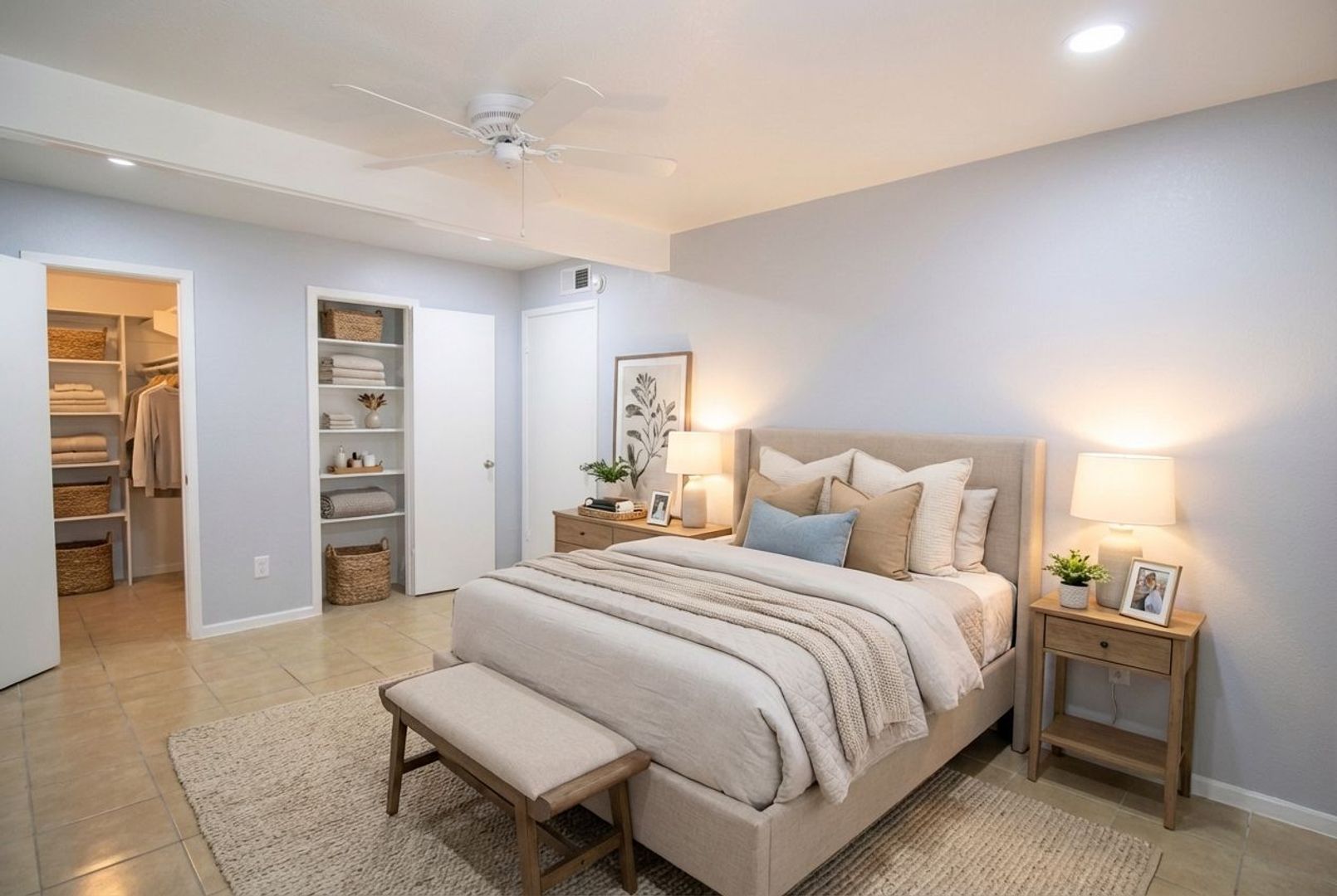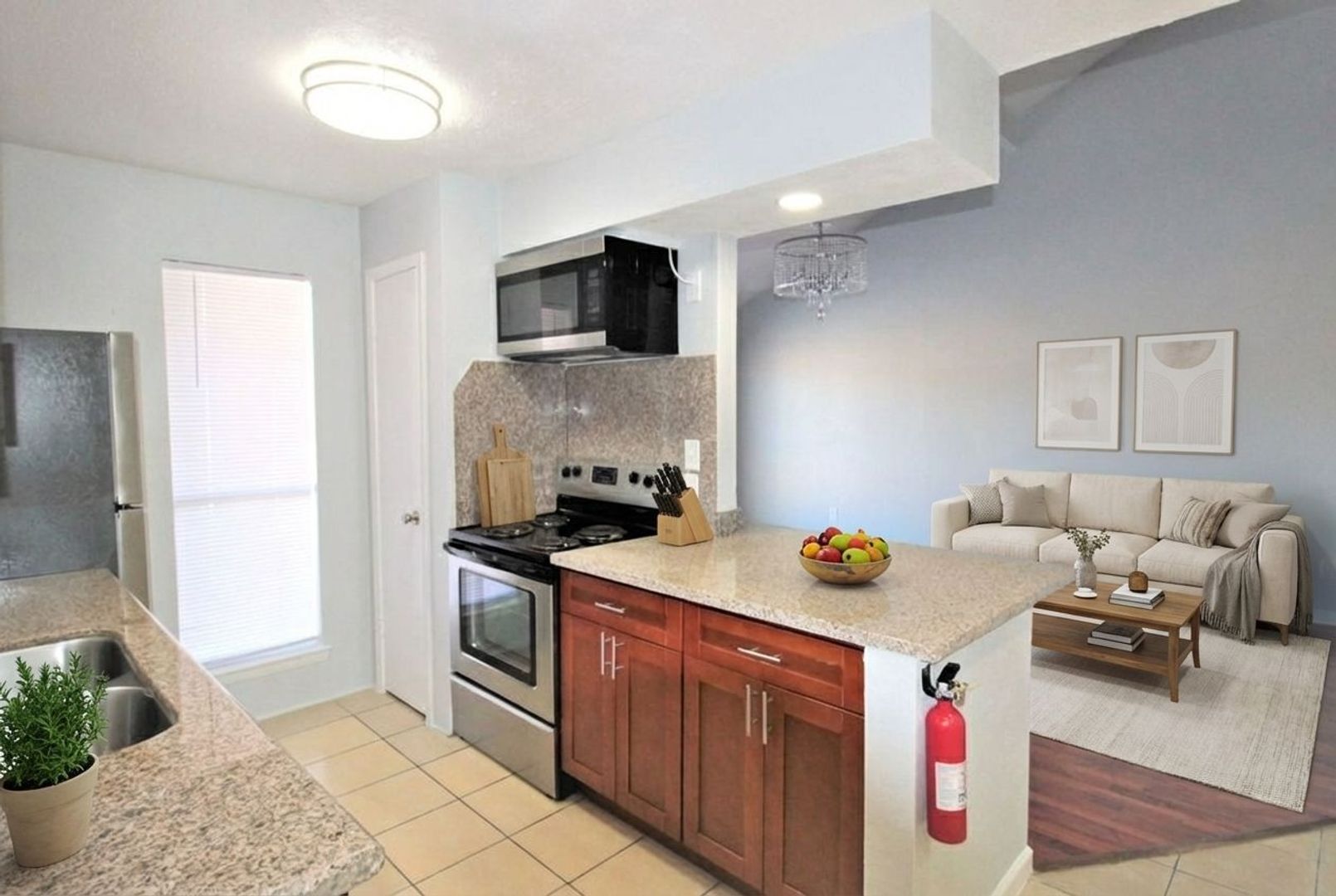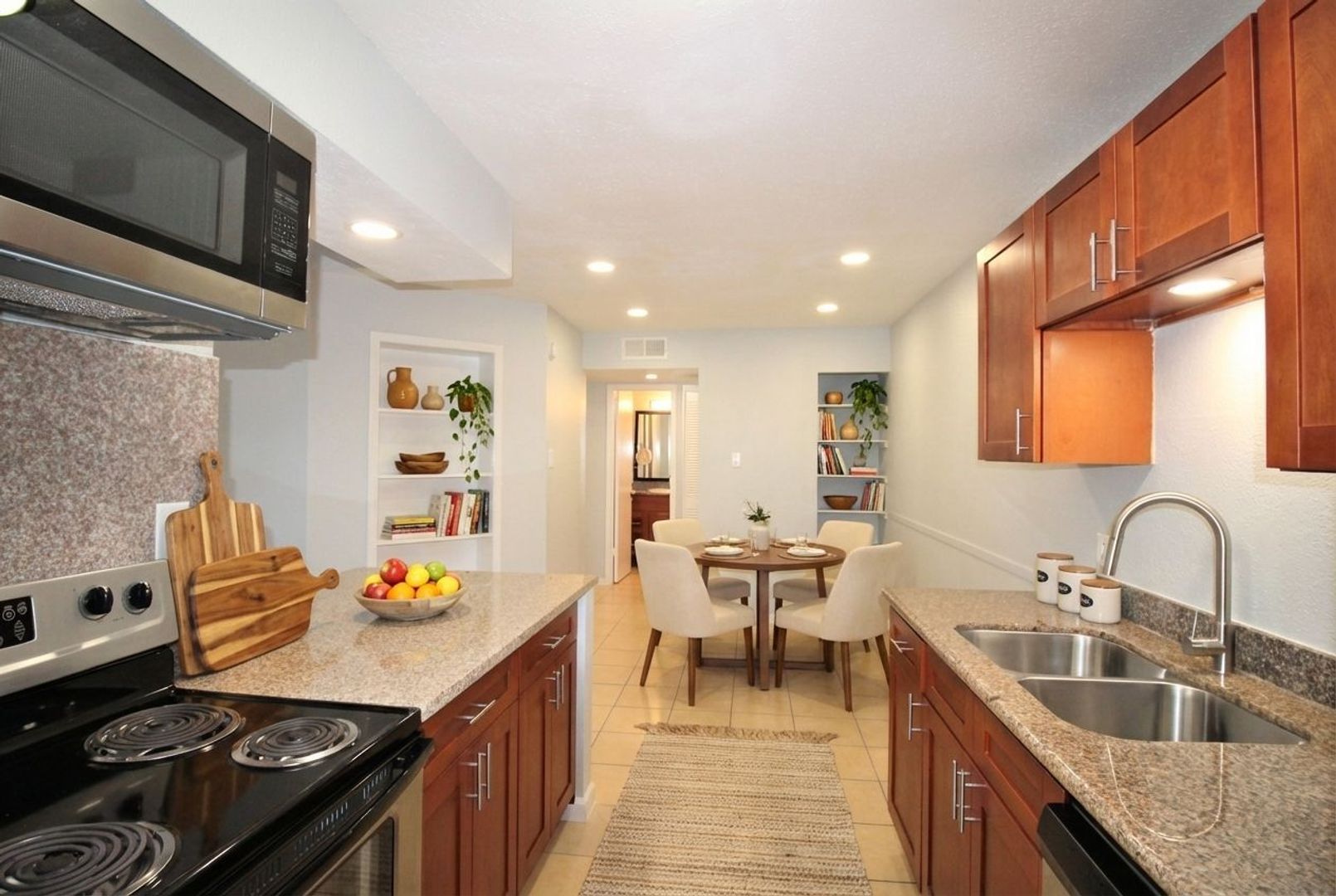 This 937 sq ft 2 x 1 apartment has been completely renovated with tile floors, granite counter tops and large walking-in closets.