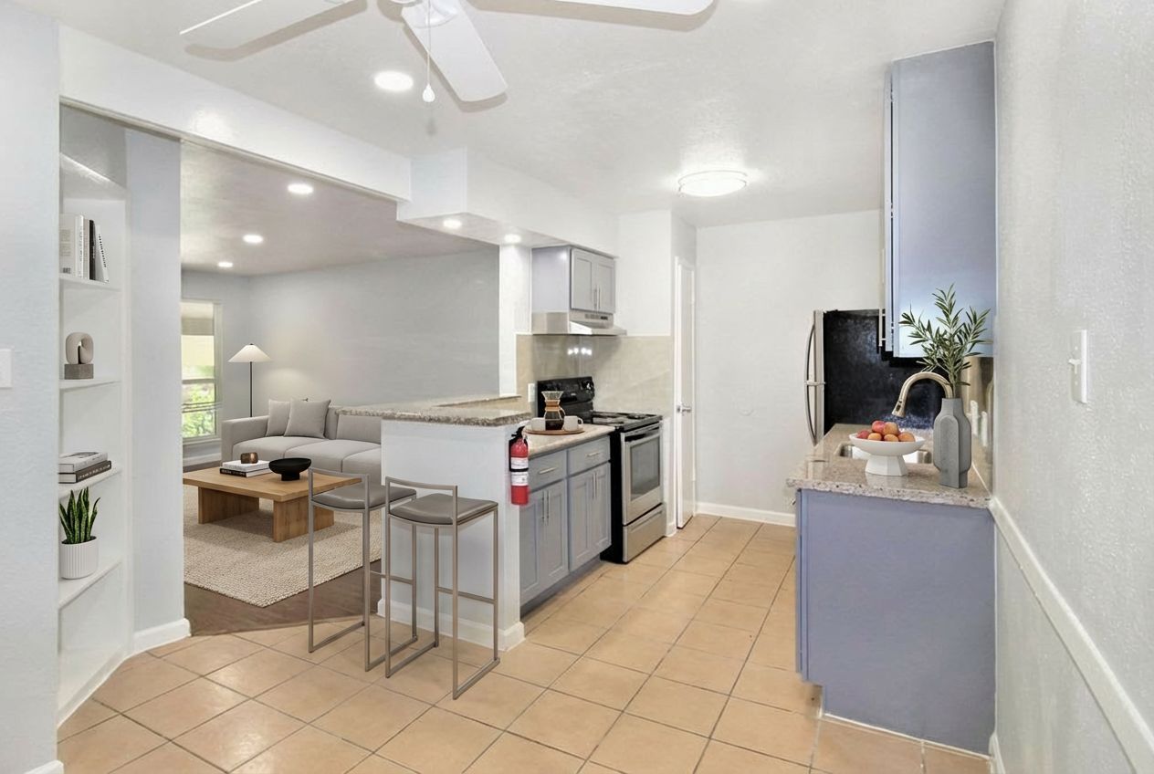 This 2 bedroom, 2 bathroom apartment is the perfect place for those looking for a spacious and modern living space. Located in a quiet neighborhood, this 1057 square foot unit has been completely renovated with tile and laminate wood floors, granite countertops, stainless steel appliances and W/D connections. LED lighting provides a bright and airy atmosphere. Residents will also enjoy the convenience of the community dog park, perfect for your four-legged family member, as well as the nearby city mini park.