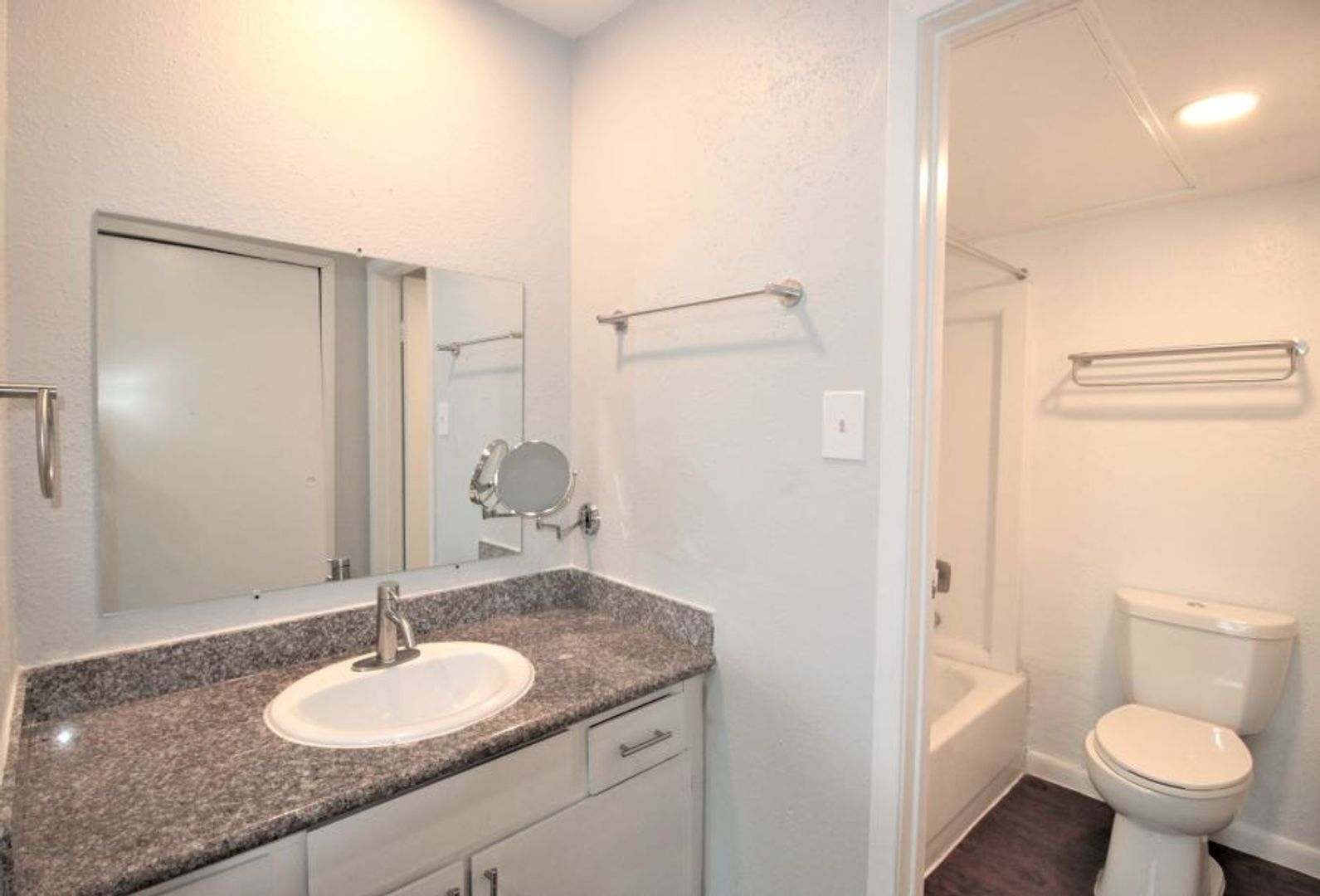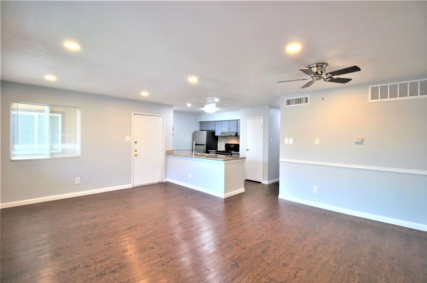 This apartment has been completely renovated. It has tile and wood floors & granite countertops.