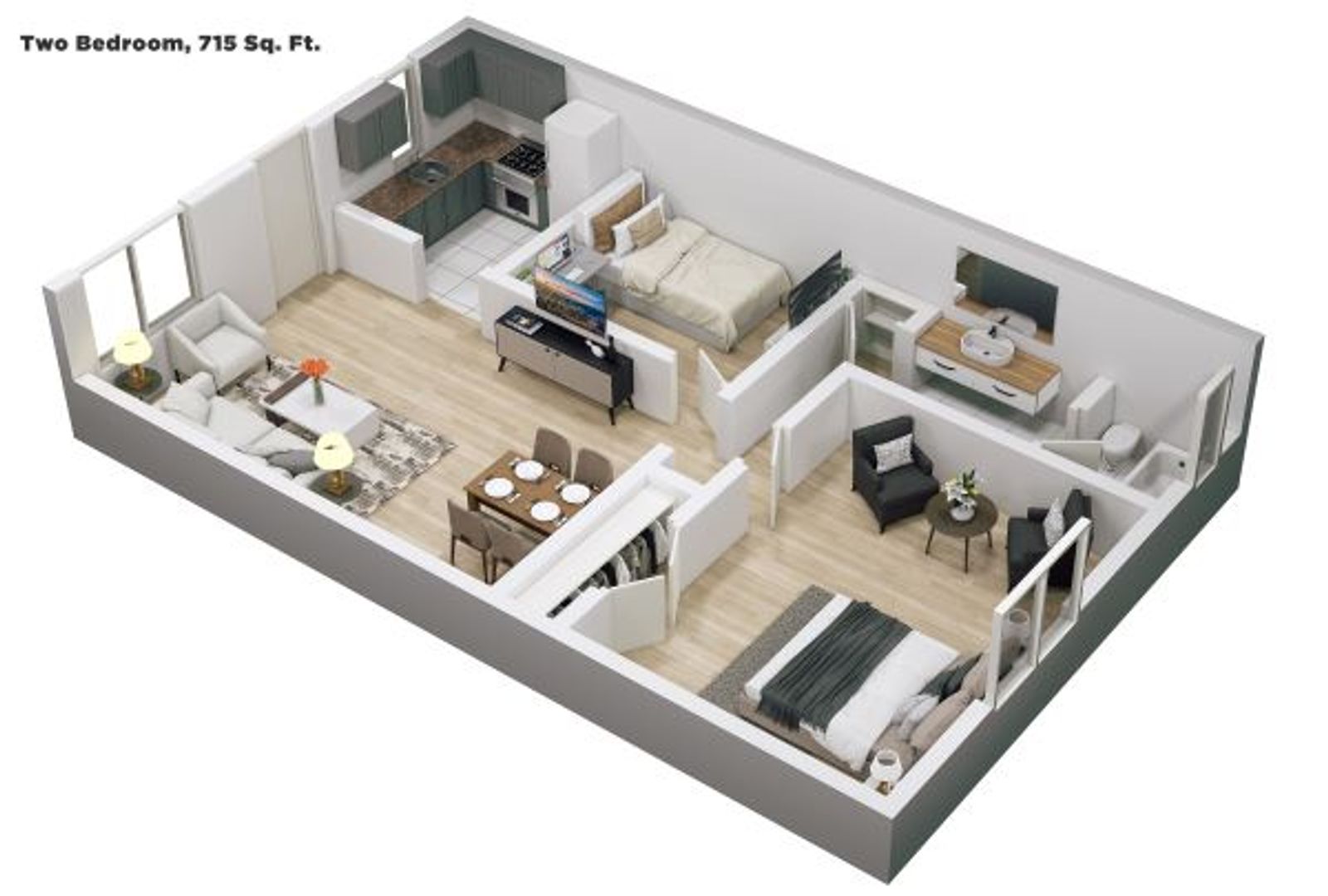 This renovated apartment has tile floors, granite countertops. Residents pay a $150 fixed monthly utility fees in addition to the rent.